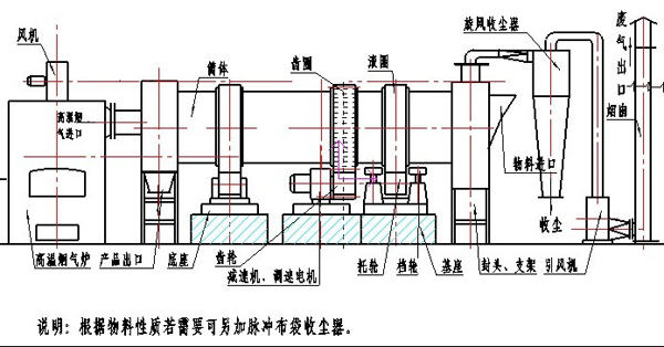 機(jī)械結(jié)構(gòu)及工作原理 直熱式回轉(zhuǎn)滾筒干燥機(jī)主要由熱源、上料機(jī)、進(jìn)料機(jī)、回轉(zhuǎn)滾筒、出料機(jī)、引風(fēng)機(jī)、卸料器和配電柜構(gòu)成。脫水后的濕物料進(jìn)入干燥機(jī)后,在滾筒內(nèi)均布的抄板的翻動下,物料在干燥機(jī)內(nèi)均勻分散與熱空氣充分接觸,加快了干燥傳熱﹑傳質(zhì)。在干燥過程中,物料在帶有傾斜度的抄板和熱氣質(zhì)的作用下,至干燥機(jī)另一段卸料器排出成品。適合于滑石粉的烘干。 主要特點 1.轉(zhuǎn)筒干燥機(jī)械化程度高,生產(chǎn)能力較大,可連續(xù)運轉(zhuǎn)。 2.結(jié)構(gòu)優(yōu)良﹑簡單﹑物料通過筒體阻力運行平穩(wěn)﹑操作方便。 3.故障少﹑維護(hù)費用低﹑功耗低。 4.適用范圍廣﹑產(chǎn)品干燥的均勻性好。